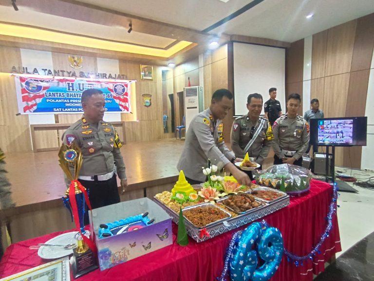 PALOPO– Bertempat di Aula Tangga Sudhirajati Polres Palopo, Satuan Lalu Lintas (Satlantas) Polres Palopo menggelar acara syukuran dalam rangka memperingati HUT Lantas Bhayangkara ke-69. Acara tersebut berlangsung dengan tema “Polantas Presisi Hadir Menuju Indonesia Maju”, yang menekankan peran penting polisi lalu lintas dalam mendukung kemajuan Indonesia, Kamis (26/9).