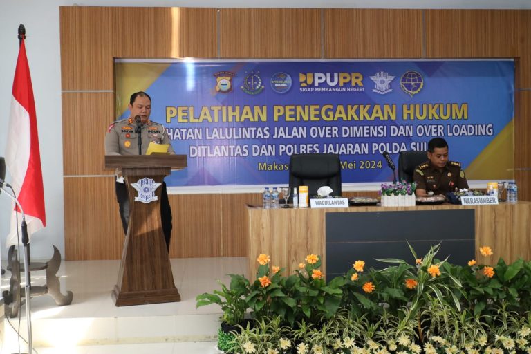 MAKASSAR– Dalam Rangka meningkatkan Kwalitas Peyidik guna Mewujudkan Polantas yg Profesional dan Presisi Ditlantas Polda Sulsel melaksanakan Pelatihan Penegakan Hukum Kejahatan Lalulintas Jalan Over dimensi dan Over Loading Pada tanggal 30 hingga 31 Mei 2024 bertempat di Aulabiru Biru Ditlantas Jl.AP Petarani Makassar.