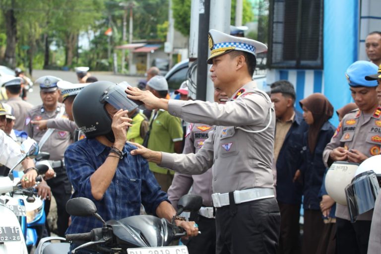 Sebanyak 130 helm dibagikan kepada unsur masyarakat, pelajar, dan tukang ojek sebagai bagian dari kampanye keselamatan berkendara.