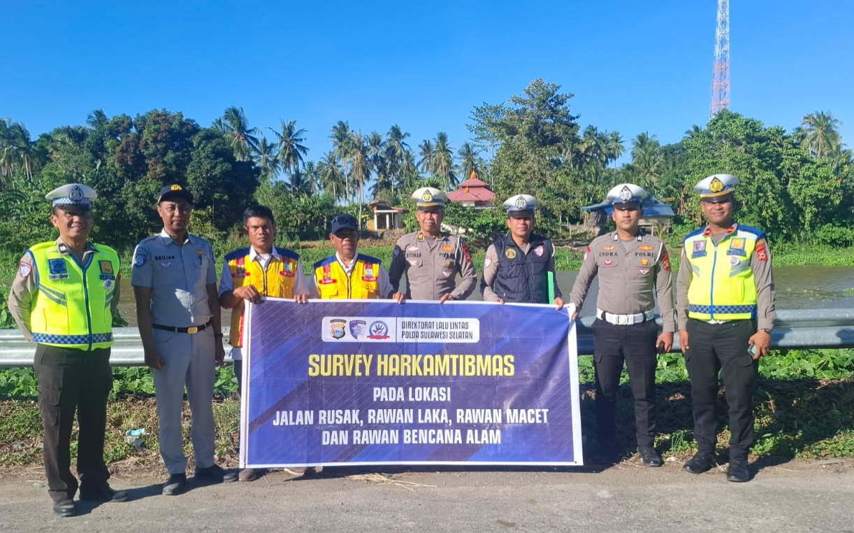 BONE– Tim Satlantas Polres Bone bekerja sama dengan Subdit Kamsel Ditlantas Polda Sulsel, Jasa Raharja, serta dinas terkait, melakukan survei lapangan untuk memetakan kondisi jalan rusak yang berpotensi picu kecelakaan lalu lintas di wilayah Kecamatan Dua Boccoe, Kabupaten Bone.