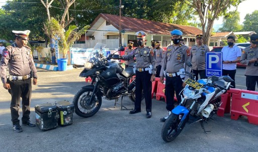 BANTAENG– Motor Gede (Moge) dengan merek BMW, Type R.1200 G pembuatan Tahun 2011, warna Abu-abu, nomor Polisi (Nopol) B 3909 UCH kendaraan roda dua yang dipakai anggota komunitas moge menabrak Bripka Abdul Rais, anggota Provost Polres Bantaeng saat menggelar touring, akhirnya diamankan Polres Bantaeng.