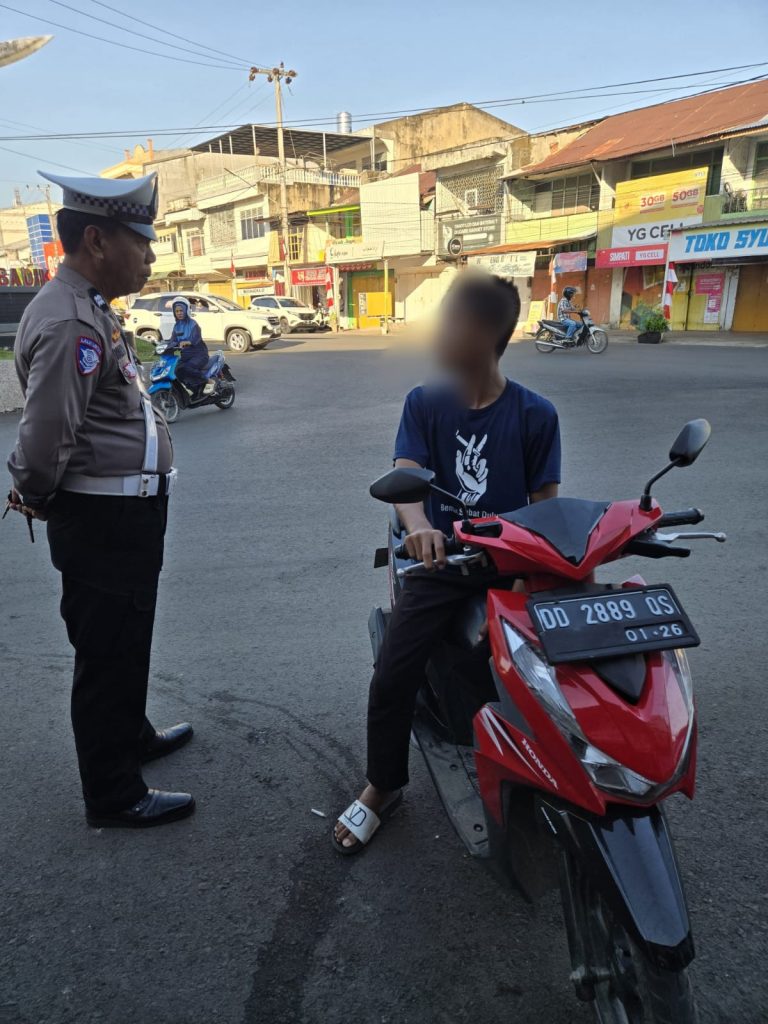 BONE – Satuan Lalu Lintas (Satlantas) Polres Bone kembali menertibkan para pengendara kendaraan bermotor yang masih di bawah umur dalam operasi rutin pengaturan lalu lintas di sejumlah titik Kota Watampone, Kabupaten Bone, Rabu pagi (13/8/2025).