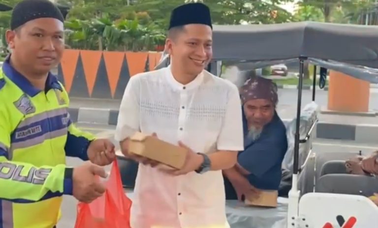 MAKASSAR– Satlantas Polrestabes Makassar melaksanakan kegiatan berbagi takjil pada hari kedua pelaksanaan ibadah puasa di area Jalan Pettarani, Minggu sore.