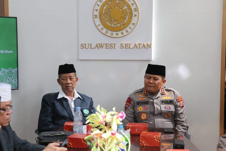 MAKASSAR– Kapolda Sulawesi Selatan Irjen Pol. Drs. Setyo Boedi Moempoeni Harso.,SH.,M.Hum melakukan kunjungan silaturahmi ke Kantor Sekretariat Majelis Ulama Indonesia (MUI) Provinsi Sulawesi Selatan (Sulsel), Rabu (03/05/2023).