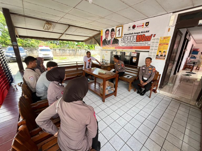 BONE – Kanit Kamsel Satlantas Polres Bone IPDA Sasram bersama anggota, melakukan giat koordinasi dengan tim pemenangan atau LO para pasangan Calon Bupati dan Wakil Bupati Bone, Rabu (13/11/2024).