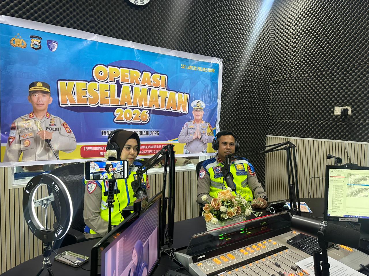 Dihari pertama, Operasi Keselamatan Pallawa 2026 Satlantas Polres Bone kembali diwarnai dengan kegiatan sosialisasi yang disampaikan melalui siaran langsung radio di RRI BONE.
