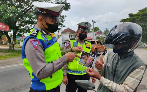 “Selain memberi teguran pada para pelanggar, operasi yang kami gelar yang bertujuan Patuh aturan lalulintas dan patuh untuk keselamatan disosialisasikan ke sosial media hingga saat ini 95 kali, pembagian stiker 100 lembar dan pemasangan spanduk di